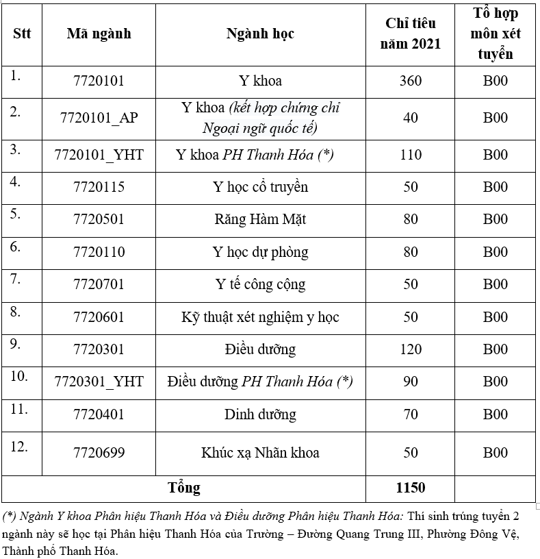 Ngoài ra, ngành Y khoa có 40 chỉ tiêu đào tạo theo nhu cầu đặt hàng của các địa phương. Thời hạn trường nhận công văn đặt hàng đào tạo của các địa phương trước ngày 30/6/2021. Trường sẽ xem xét phân bổ chỉ tiêu cho các địa phương có văn bản đặt hàng.
