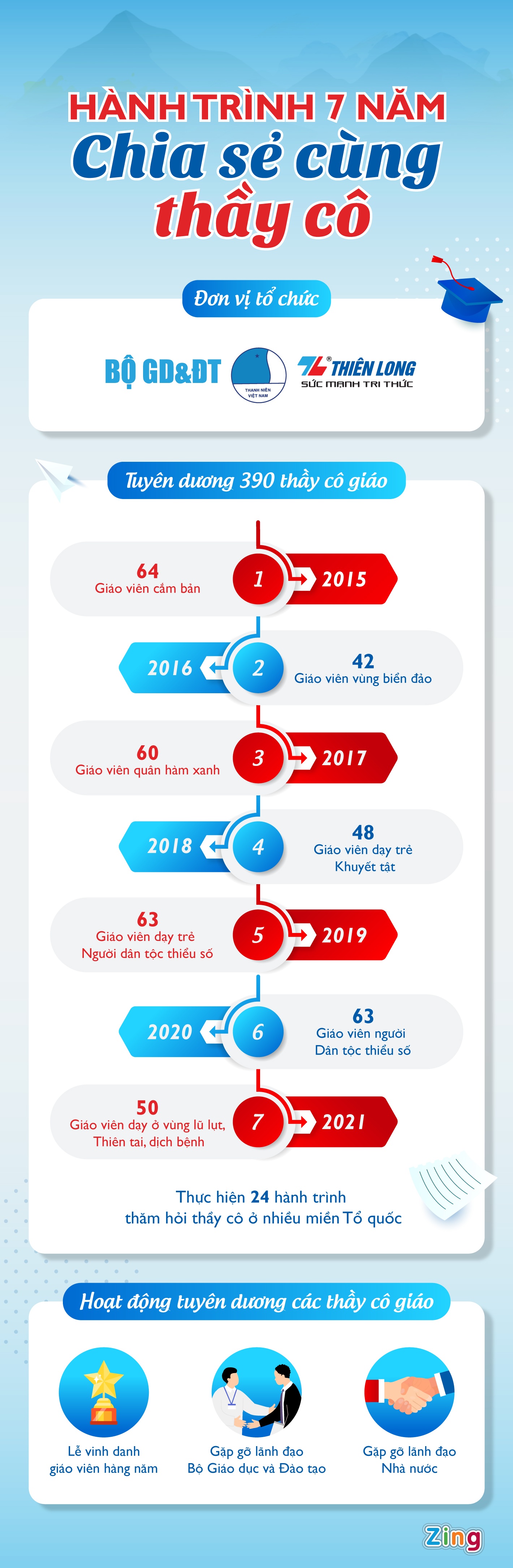 Chia sẻ cùng thầy cô là chương trình thường niên do Bộ Giáo dục và Đào tạo, Hội Liên hiệp Thanh niên Việt Nam, Tập đoàn Thiên Long đồng tổ chức, bắt đầu từ năm 2015. Trải qua 7 năm thực hiện, chương trình đã tuyên dương 390 thầy cô giáo đến từ mọi miền Tổ quốc.