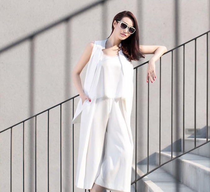 | Lan Ngọc lãng mạn với chiếc áo gile trắng có biến tấu chất liệu mỏng manh hơn. |