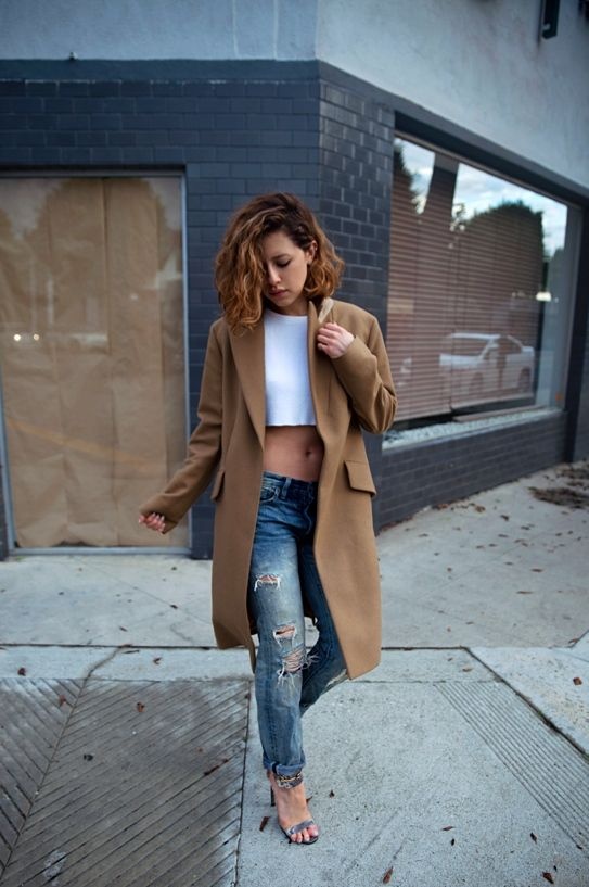 | Áo camel và quần boyfriends, crop top trẻ trung. |