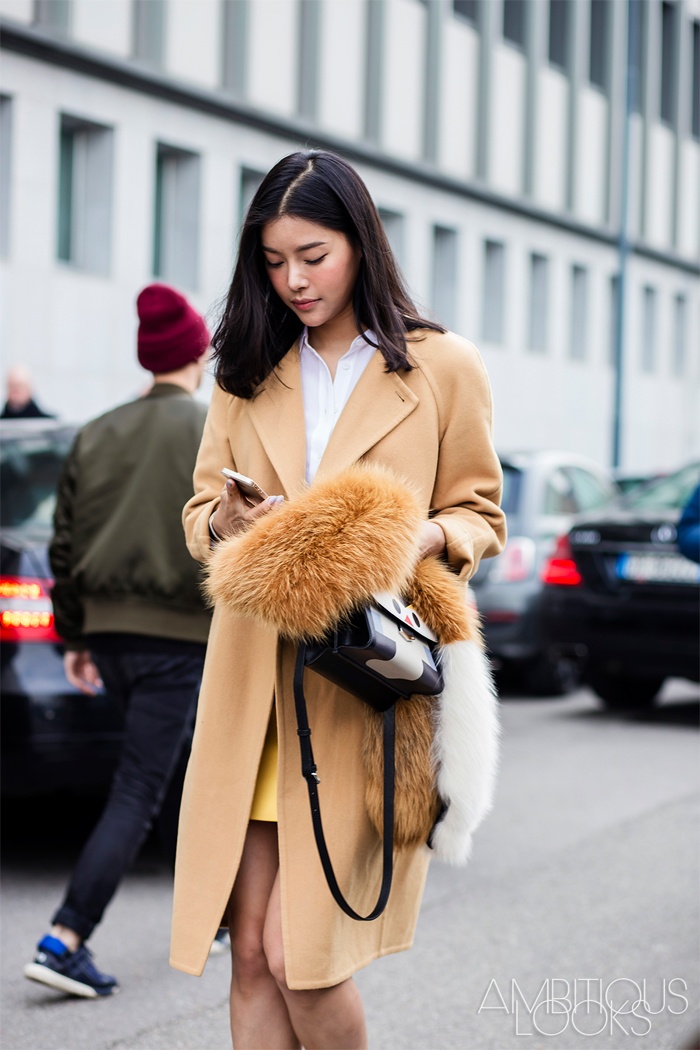 | Hình ảnh tinh nghịch của cô gái trên phố với cách mix áo camel cá tính. |