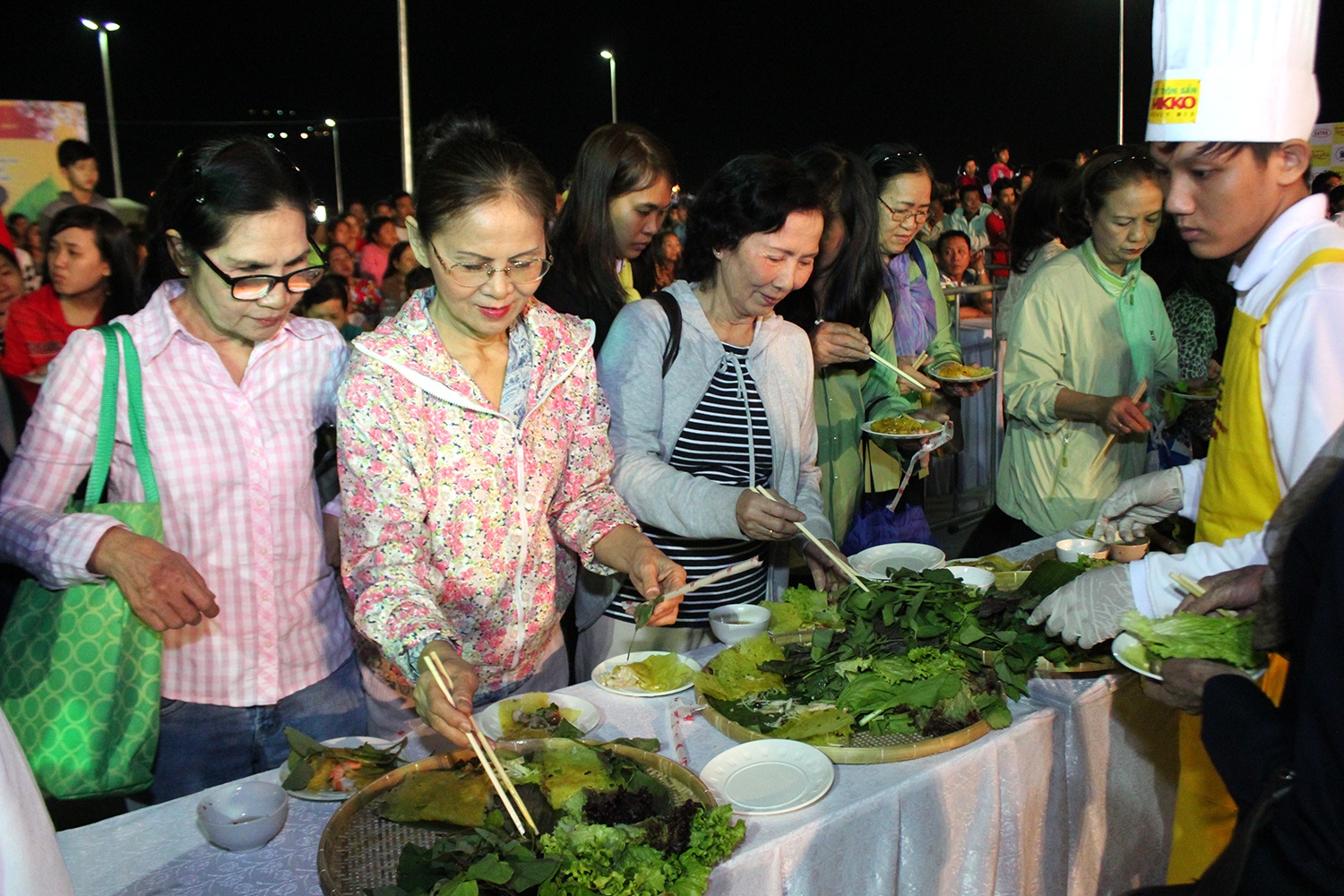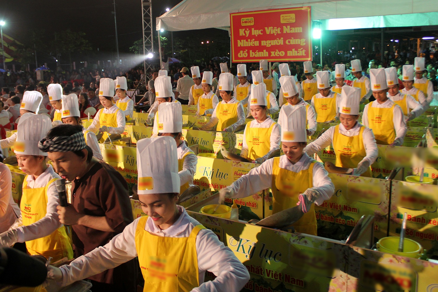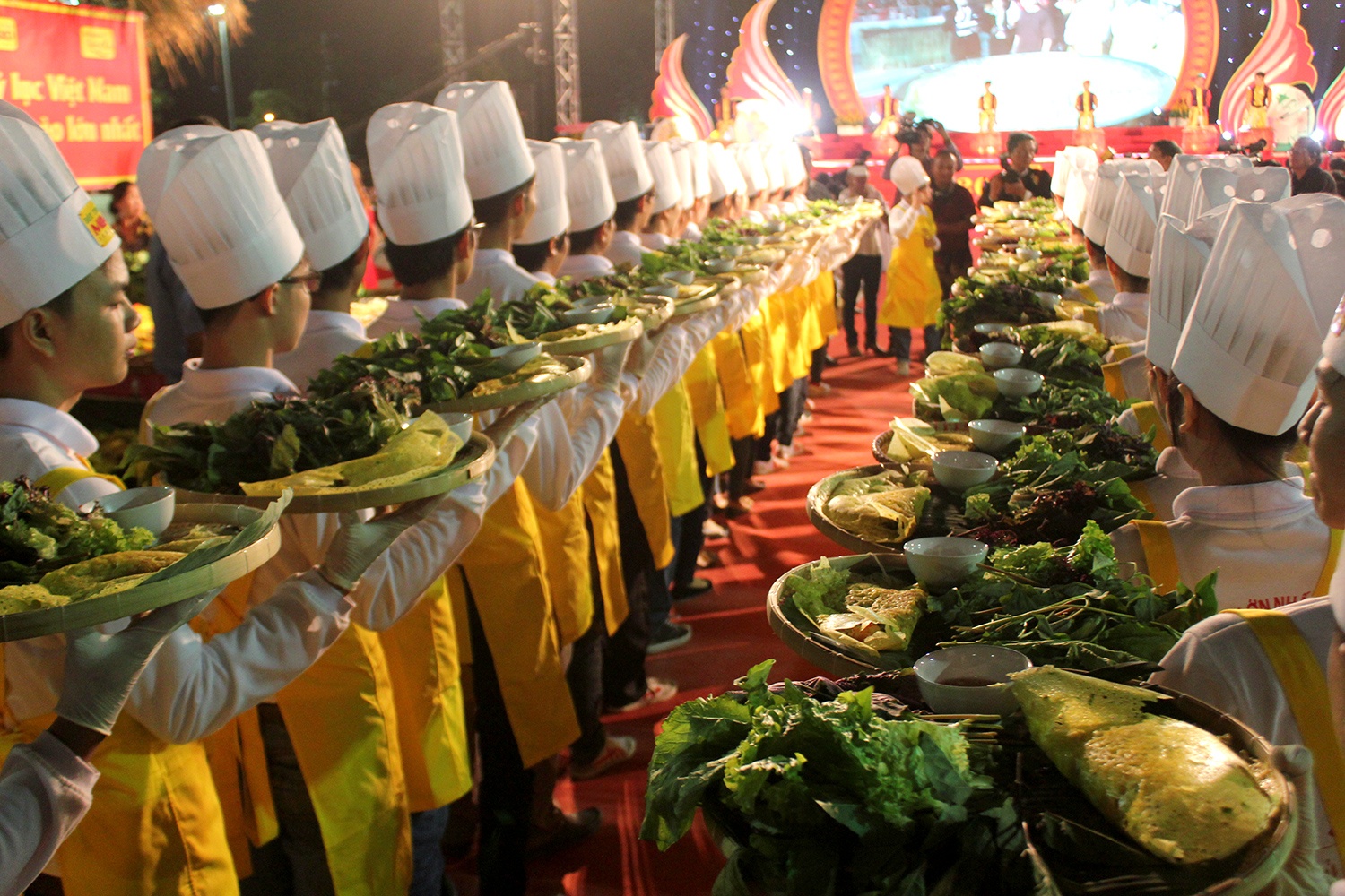 | 40 đầu bếp đã hoàn thiện xong những chiếc bánh xèo sau 15 phút. |