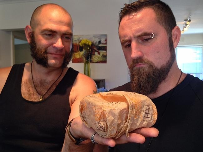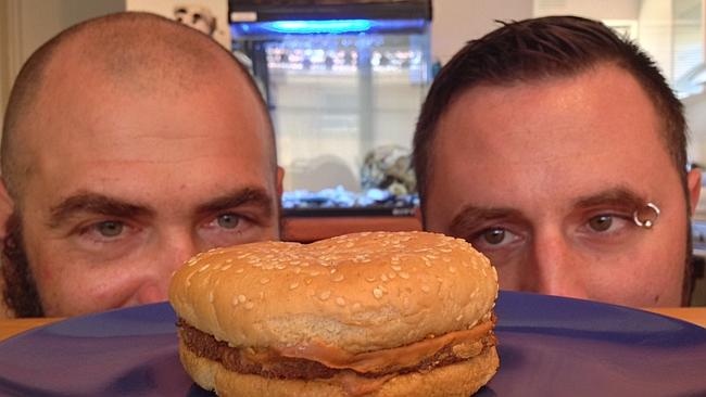 | Casey Dean và anh bạn Eduard Nitz, người Adelaide (Australia) đang giữ chiếc hamburger cao niên nhất thế giới. Ảnh: news.com.au. |