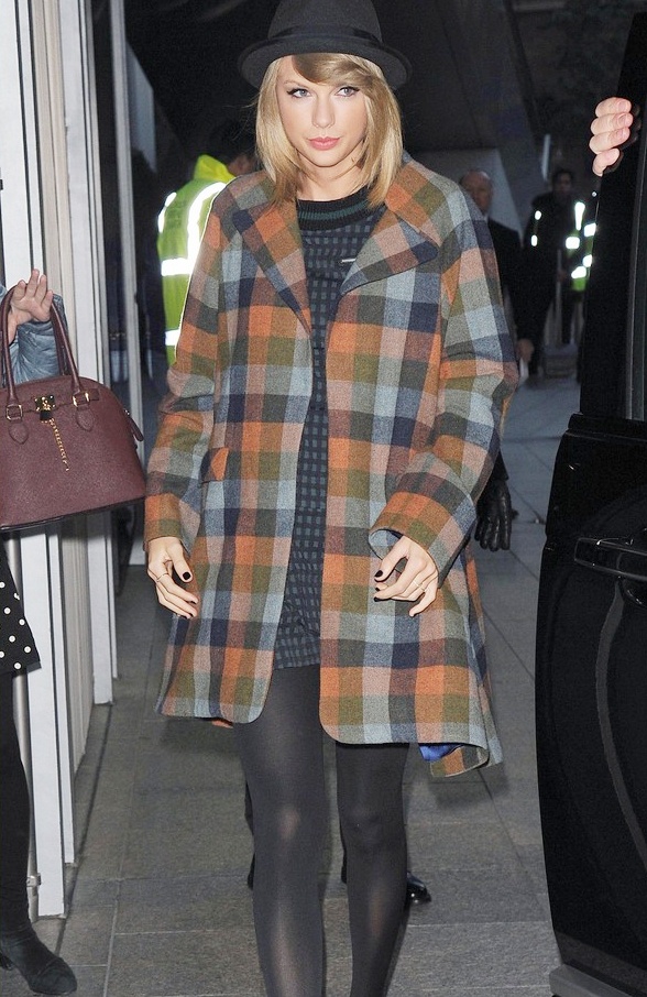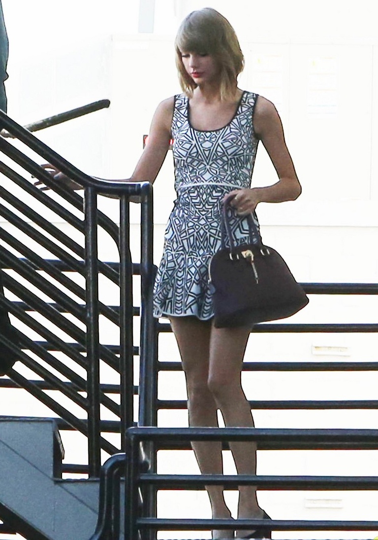 Một cách kết hợp túi xách của Taylor Swift với đầm họa tiết.