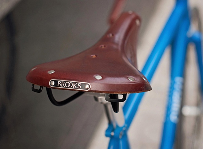 | Yên xe Brooks của Anh với màu da nâu nổi bật. |