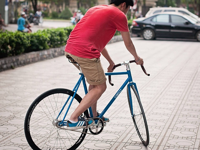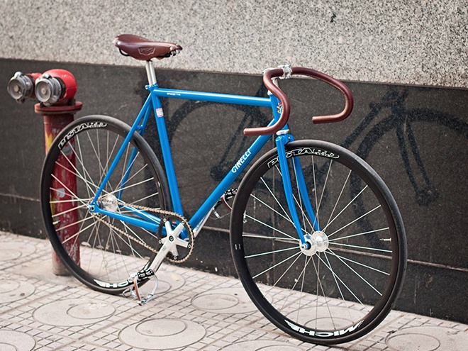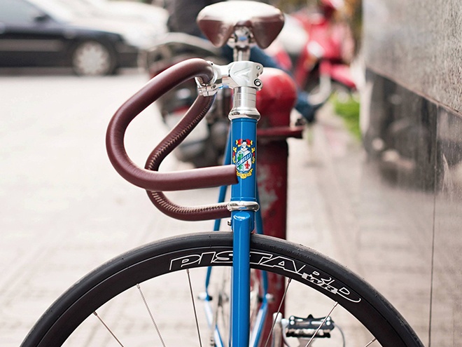 | Chiếc xe đạp Fixed Gear màu xanh được cho là độc nhất Hà Thành được thành viên Vita Dolce của Fixed n' Friend chia sẻ hình ảnh trên Facebook. |