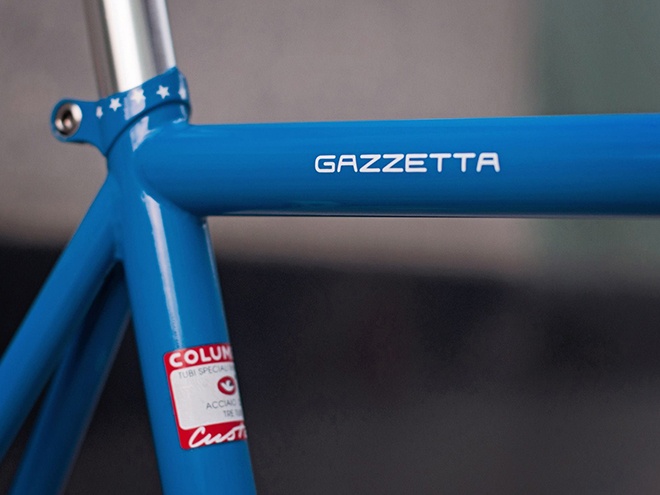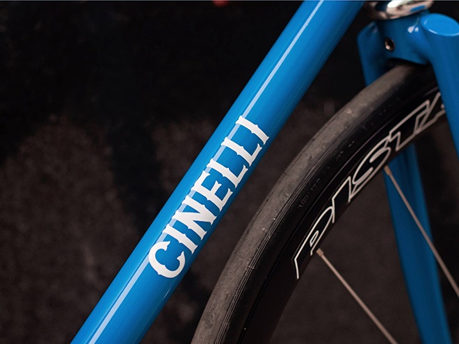 | Chiếc xe được xây dựng trên khung xe Cinelli Gazzetta nổi tiếng của Italia. |