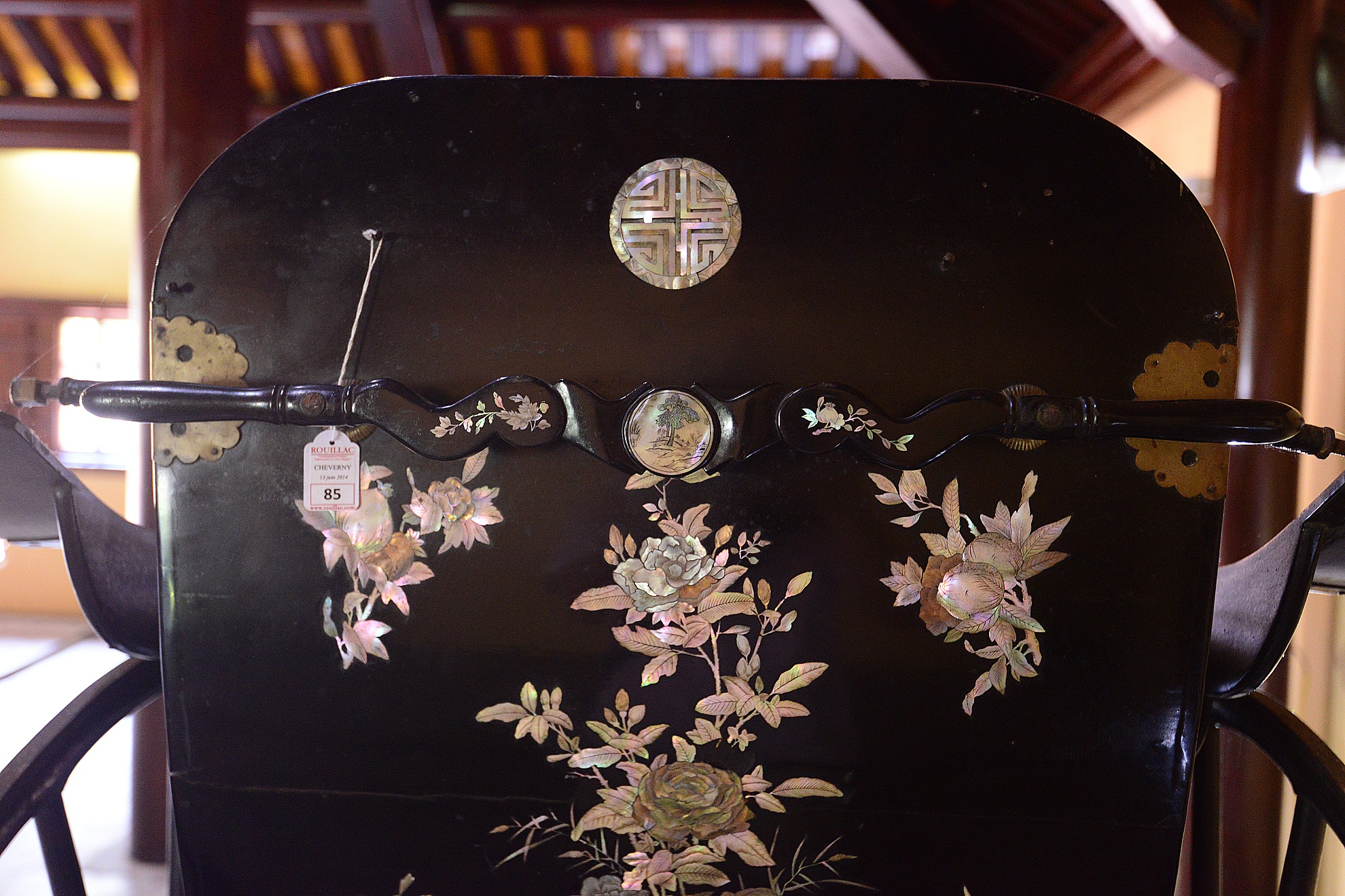 Nghệ thuật khảm xà cừ tuyệt đẹp với nhiều họa tiết hoa lá. Ngoài ra còn có tay cầm cho người phía sau đẩy.