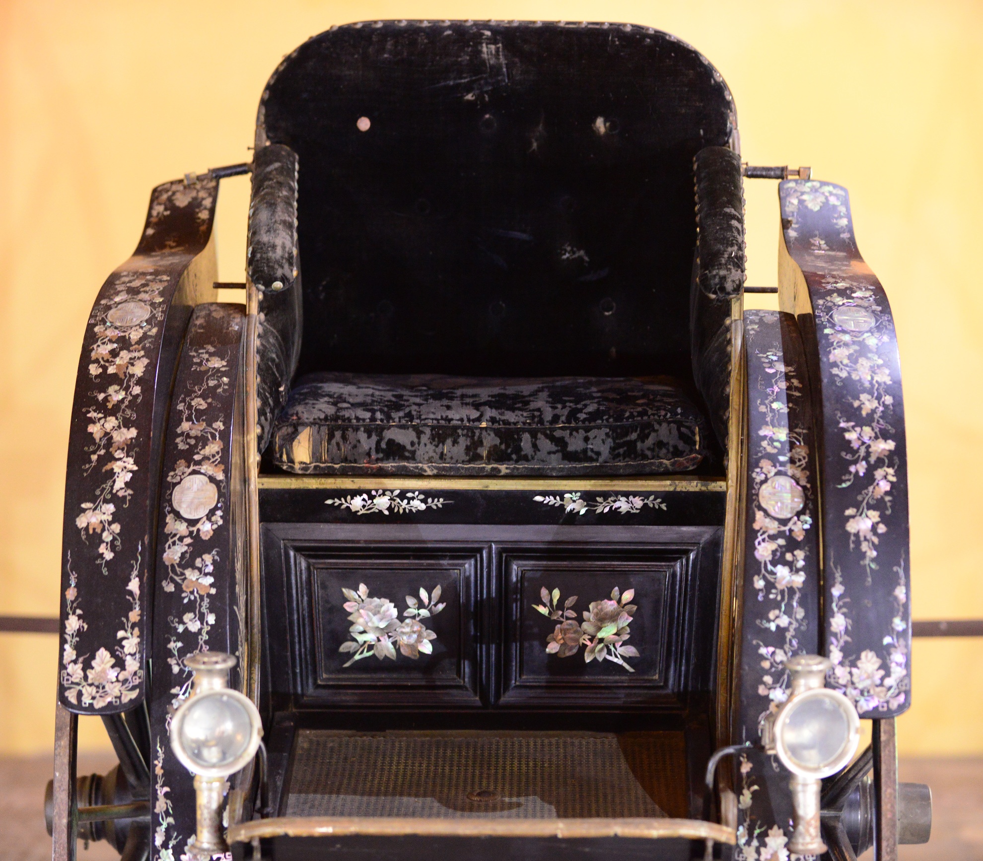 Chiếc ghế trên xe kéo được bọc nỉ với phong cách kiểu dáng Louis (như nhiều ghế khác cùng thời, thường gọi là phong cách Tân cổ điển, hiện còn ở Hoàng cung Huế).