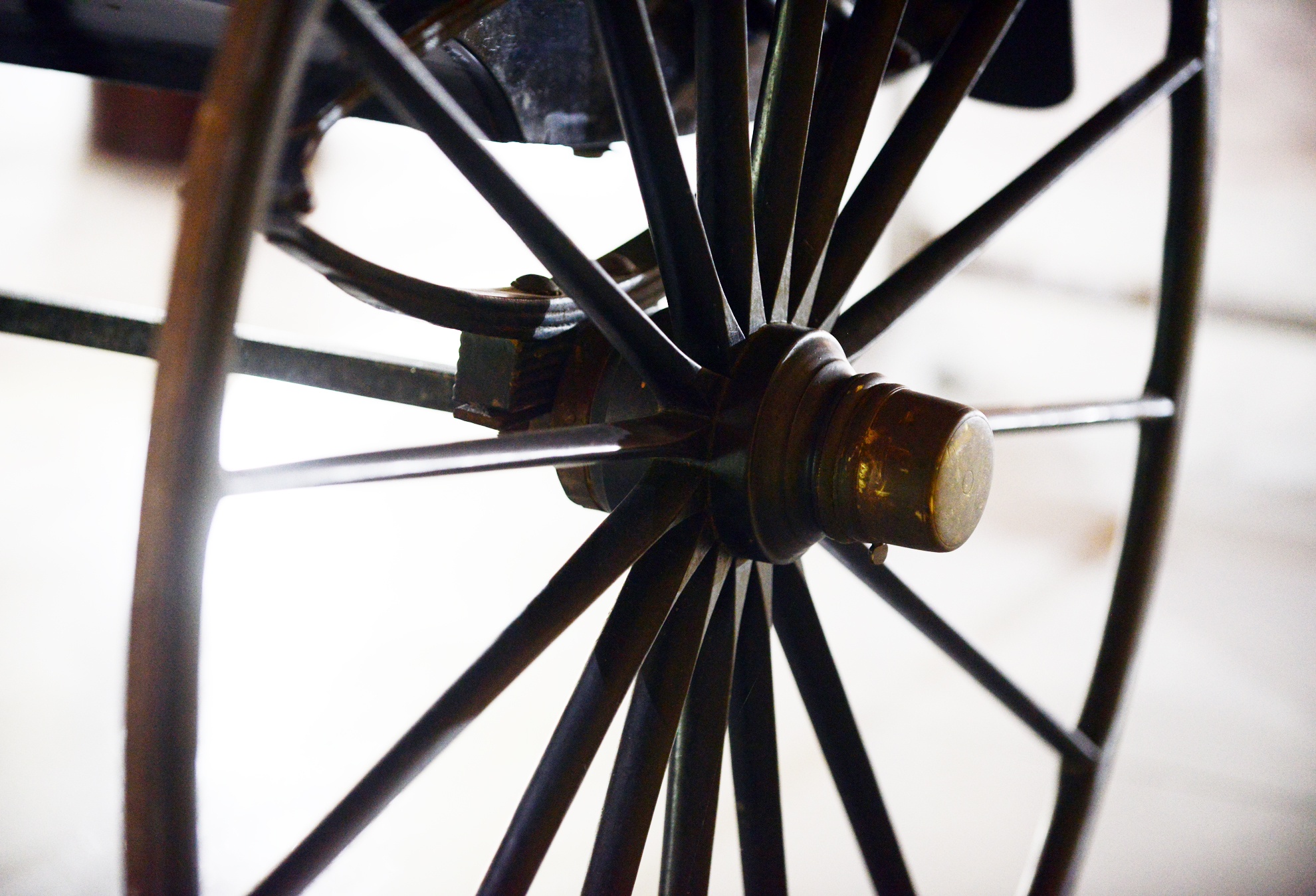 Phần bánh xe được chế tạo bằng đồng, sắt còn nguyên vẹn.