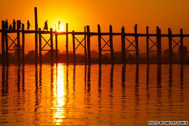 | 7. Cầu U Bein, thành phố Mandalay, Myanmar: U Bein là cây cầu gỗ tếch lâu đời nhất trên thế giới với chiều dài 1,2 km bắc ngang qua hồ Taungthaman ở Amarapura, cố đô cũ của Myanmar. |
