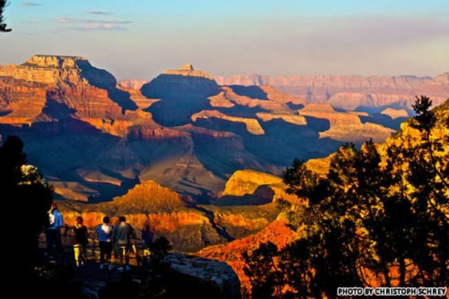 2. Grand Canyon (Mỹ) dài 446 km, rộng 0,4 đến 24 km và sâu hơn 1.600 m. Hàng năm có hàng triệu du khách tới dãy núi Grand Canyon ở bang Arizona để đón hoàng hôn.