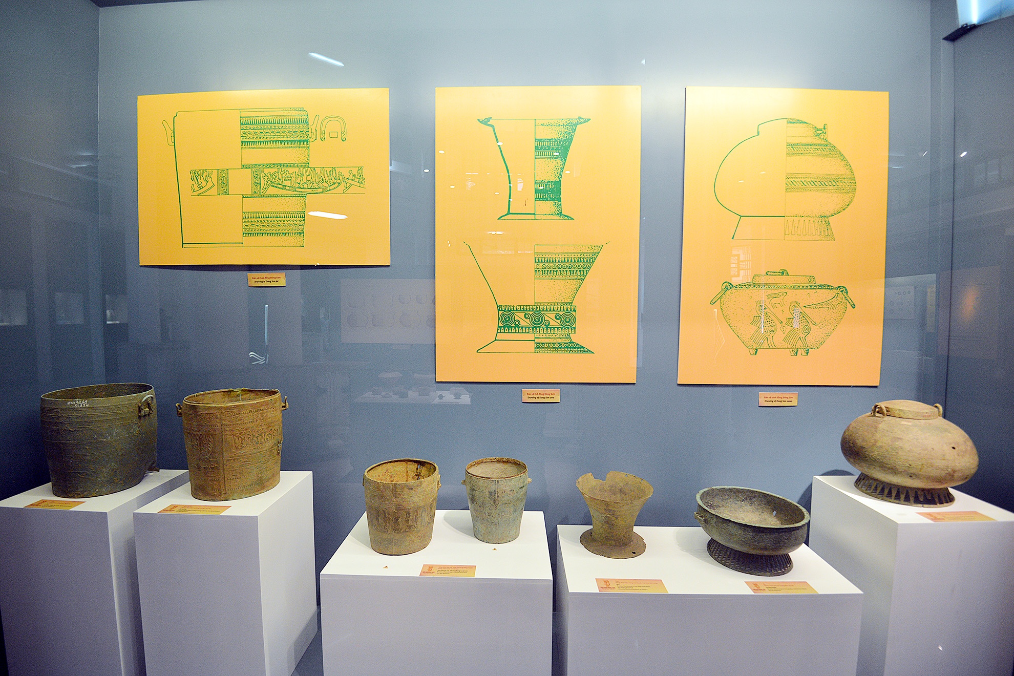| Các hiện vật được trưng bày được chia theo các loại hình tiêu biểu như trống đồng, công cụ lao động, đồ dùng sinh hoạt, vũ khí, nhạc khí, trang sức, đồ minh khí (chôn cùng người chết). |