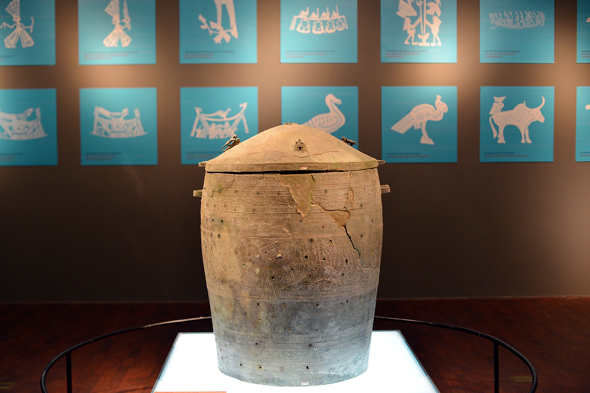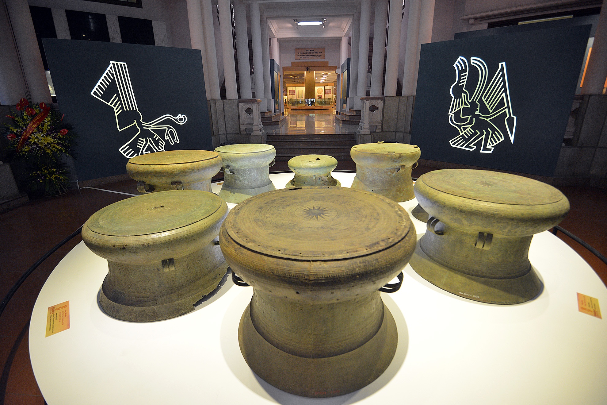 Các trống đồng cùng hàng trăm cổ vật thời kỳ văn hóa Đông Sơn vừa được trưng bày tại Bảo tàng Lịch sử Quốc gia (Hà Nội). Trong đó có cả Thạp Bảo Thịnh - bảo vật Quốc gia.