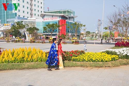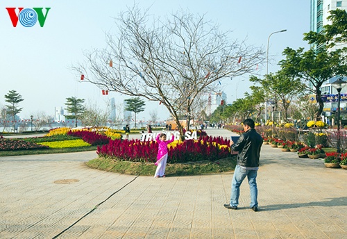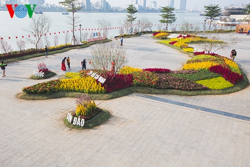 Những ngày Tết Ất Mùi này, bản đồ Việt Nam bằng hoa thu hút rất nhiều người dân Đà Nẵng và du khách thập phương đến tham quan và chụp ảnh lưu niệm.