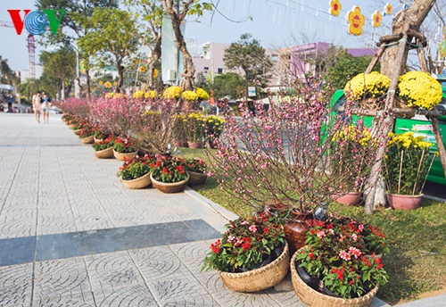 Đặc biệt, hai bên đường được trang hoàn bằng hàng trăm cây đào Nhật Tân khoe sắc giữa Đà Thành mang đến cho du khách những cảm nhận như đang lạc lối giữa làng hoa Nhật Tân của Hà thành.