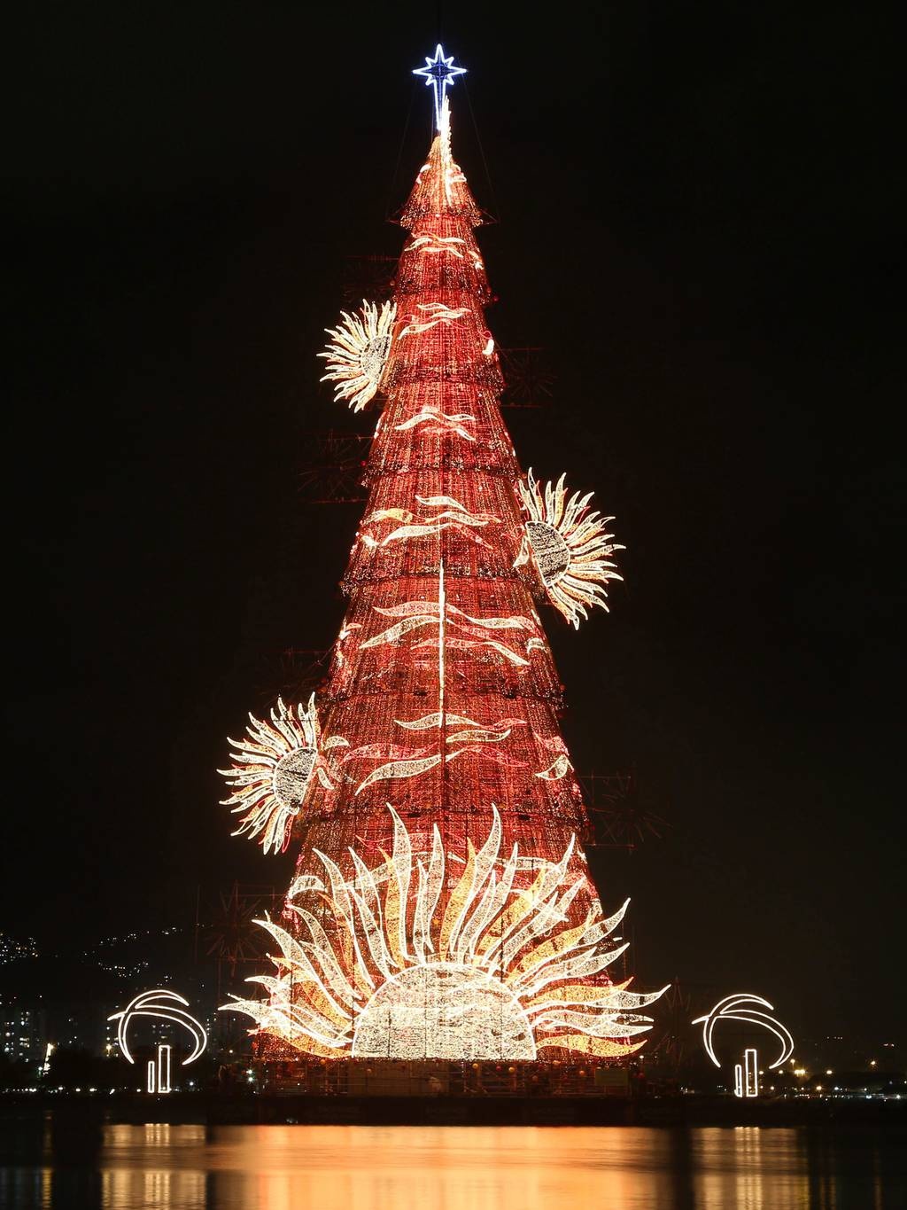 Cây thông cao 85 m và nặng 542 tấn, được thắp sáng bởi 3 triệu chiếc bóng đèn nhiều màu sắc. Ảnh:EPA |