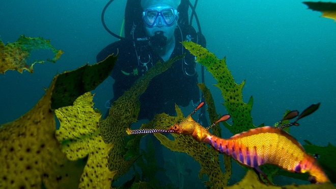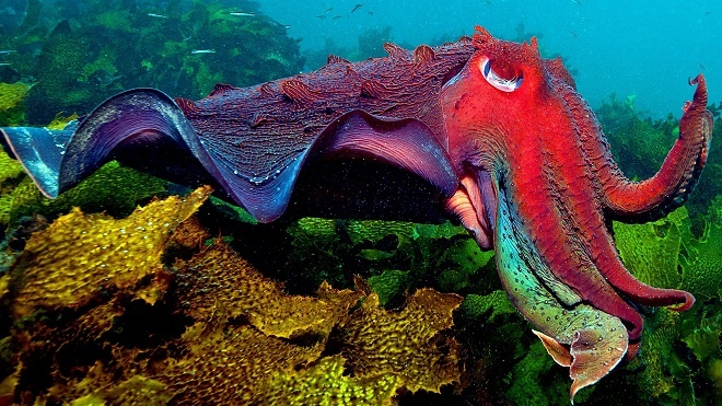 | Một con mực Úc khổng lồ với màu sắc ấn tượng. |
