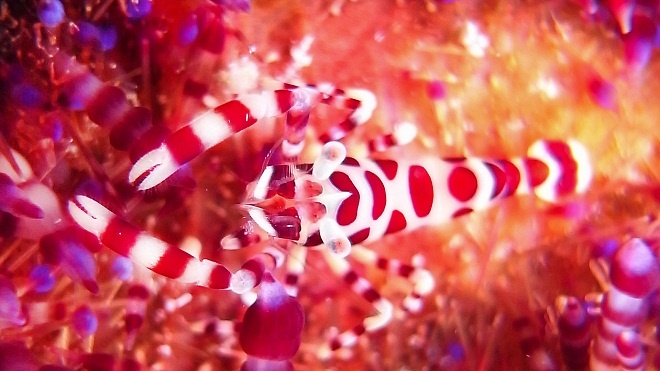 | Loài tôm với màu sắc sống tại Philippines có màu sắc giống với rạn san hô để ngụy trang. |