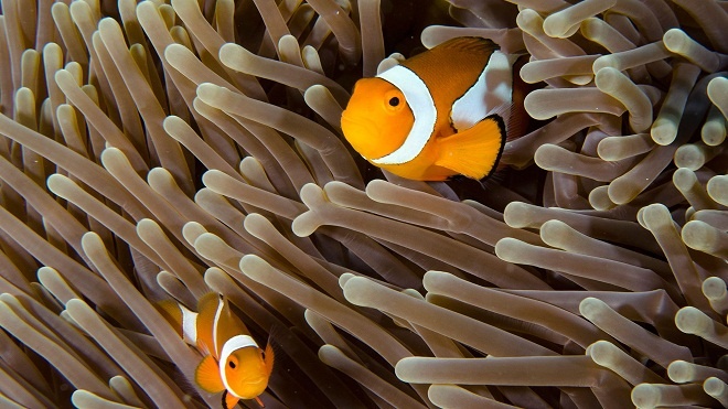 | Cá hề giữa đám hải quỳ ở rạn san hô. |