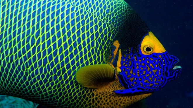 | Một chú cá thần tiên với cái trán vàng tại Indonesia. |