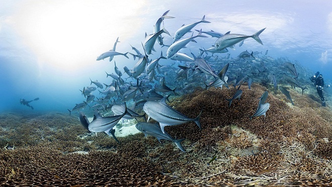| Họ cũng hy vọng sẽ giúp các nhà khoa học hiểu rõ hơn, nghiên cứu sâu hơn từ đó có phương pháp bảo tồn hiệu quả dạng môi trường này. Thông qua một số bức ảnh toàn cảnh, bạn sẽ ngỡ ngàng trước vẻ đẹp kì diệu trong thế giới của các rạn san hô. |