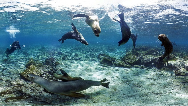 | Những chú sư tử biển Galapagos, một loài đặc hữu của quần đảo nổi tiếng này. |