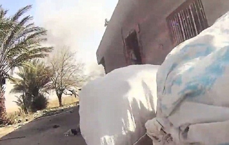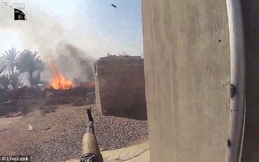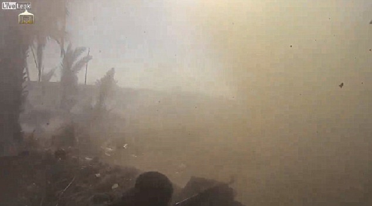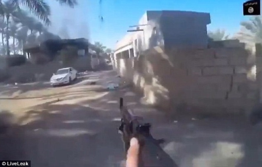 | Một trận chiến khốc liệt giữa chiến binh IS và quân đội Iraq diễn ra ở khu vực ngoại ô thành phố Ramadi hồi tháng 5. Một chiến binh IS gắn camera lên cơ thể trong lúc chiến đấu. |