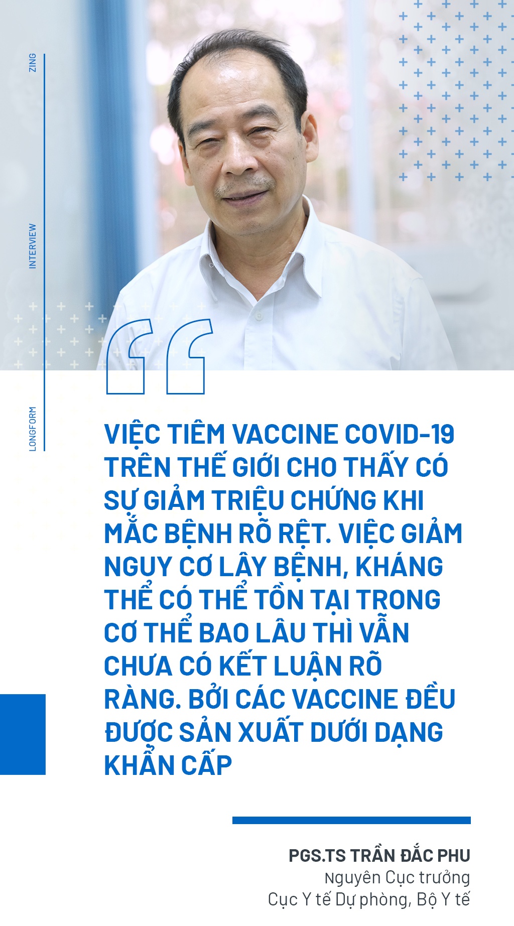 Chia sẻ với Zing, PGS.TS Trần Đắc Phu, nguyên Cục trưởng Cục Y tế Dự phòng, Phó chủ tịch Hội đồng tư vấn cấp giấy đăng ký lưu hành thuốc và nguyên liệu làm thuốc (Bộ Y tế), không ngần ngại trả lời mình sẽ tiêm vaccine Covid-19 nếu có tiêu chuẩn. Tuy nhiên, trong suốt cuộc trò chuyện, ông luôn nhấn mạnh vaccine không phải là tất cả, người dân tuyệt đối không ỉ lại, từ đó lơ là các biện pháp phòng, chống dịch khác.