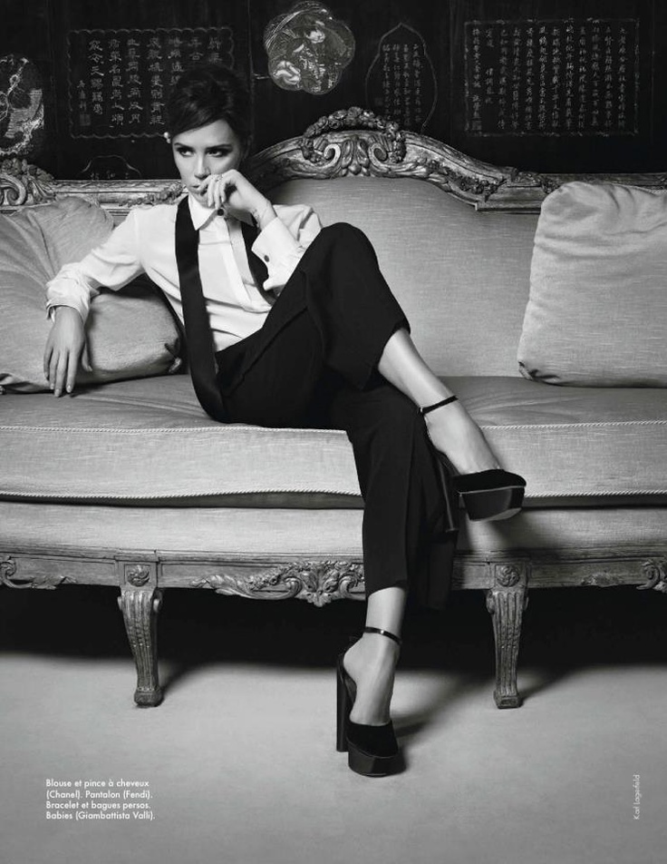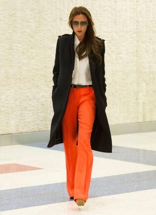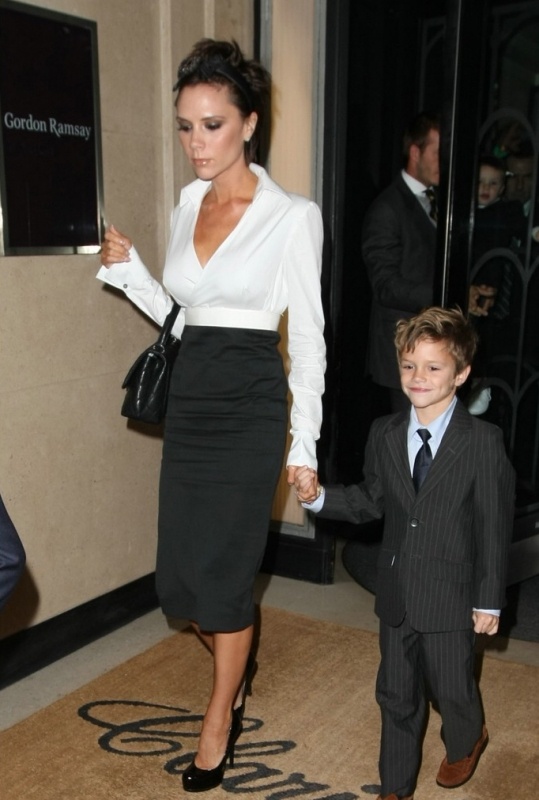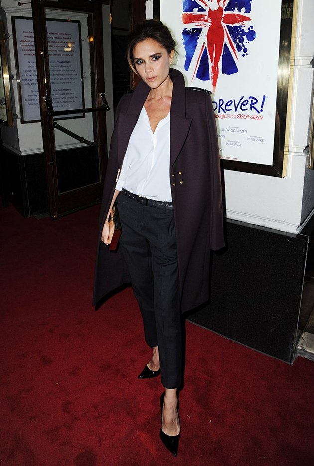 | Cách mix đồ mùa thu rất được ưa thích của Vic với áo gillet len và sơ mi trắng. |