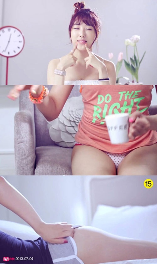| Một số khán giả cảm thấy gai mắt trước sự lạm dụng trang phục siêu cũn cỡn của các kiều nữ Hàn. |