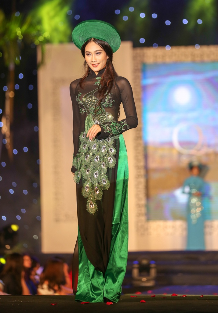 | Bộ sưu tập áo dài sử dụng tông màu truyền thống mang lại nét tinh tế, phù hợp vẻ đẹp thuần Việt. |