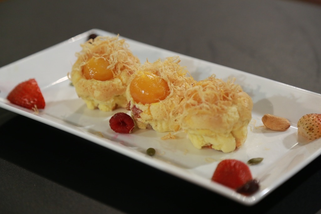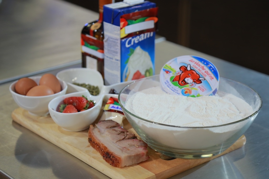| Khéo léo tận dụng tất cả nguyên liệu trong Chiếc hộp bí mật để cho ra đời món Bánh trứng heo quay sốt cherry khác lạ và độc đáo cùng kỹ năng làm bánh nhuần nhuyễn và trang trí đẹp mắt, Quốc Việt là người chiến thắng ở thử thách này. |