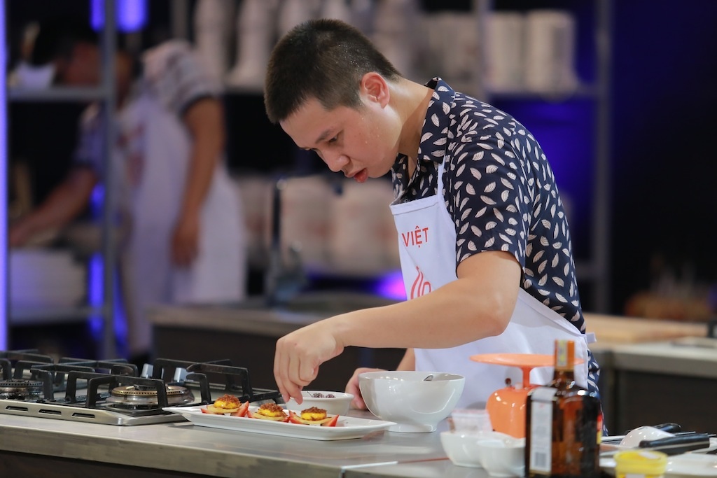 | Ở thử thách loại người, Quốc Việt được chọn giữa 3 loại bún nổi tiếng đặc trưng của 3 miền: Bún thang, Bún bò Huế và Hủ tiếu. Bên cạnh việc chọn cho mình món Bún thang quen thuộc, Quốc Việt chọn món Bún bò Huế cho các thí sinh còn lại. |