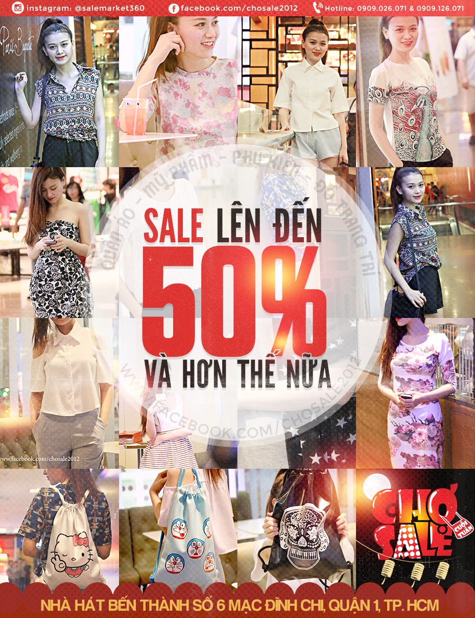 Một không gian mua sắm quá đỗi quen thuộc dành cho các bạn trẻ Sài Gòn tìm đến mua sắm vào mỗi dịp cuối tuần, Chợ Sale đã trở lại hấp dẫn và hoành tráng hơn. Lần này chợ sẽ tiếp tục mở tại nhà hát Bến Thành 6 Mạc Đĩnh Chi, Q.1, vào lúc 9h-21h thứ 7 (23/8/2014) và chủ nhật (24/8/2014) với gần 80 gian hàng.
