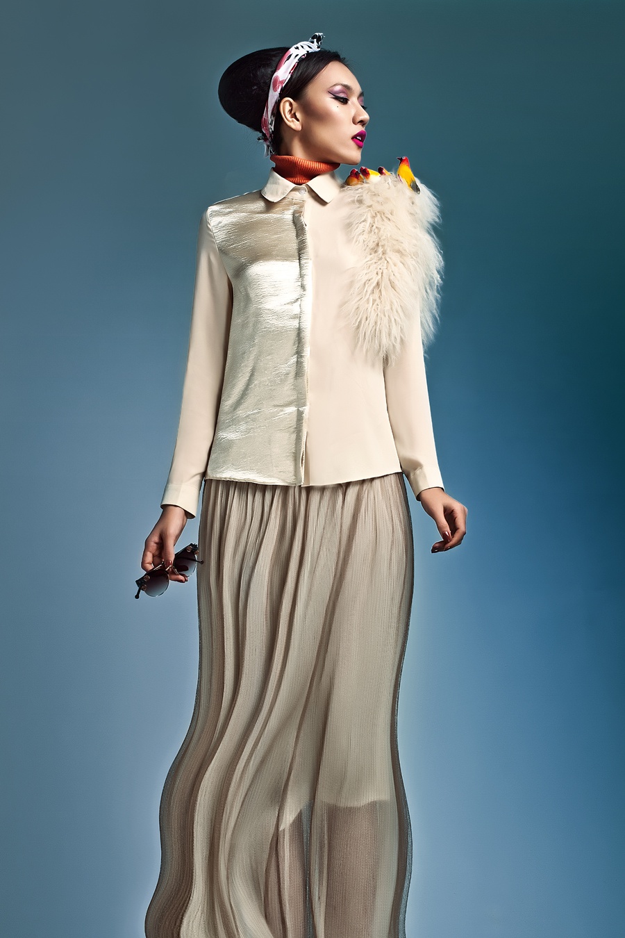 Phóng khoáng hơn với cách mix gam màu trắng kem. Trang phục tối giản họa tiết được các tín đồ thời trang tin dùng trong suốt một năm qua. Cách phối chất liệu lụa mềm và lụa tự nhiên tạo nên set trang phục nhẹ nhàng, mà không kém phần đẳng cấp.