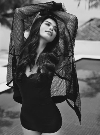 | Diễm My cũng ưa chuộng áo tắm gam màu tối khi thực hiện bộ ảnh thời trang gợi cảm. Thiết kế dạng dây thuộc list xu hướng đang được ưa chuộng trong năm 2015 phù hợp với vóc dáng cân đối của người đẹp 9X. |