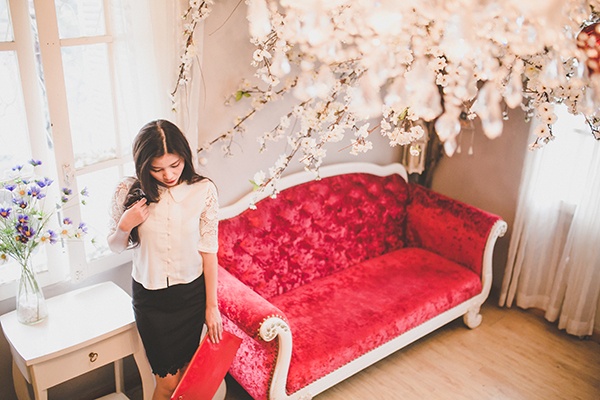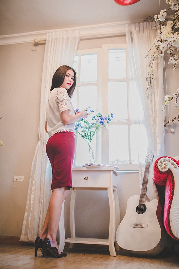 | Chiếc áo sơ mi cách điệu trắng kết hợp cùng chân váy đen hoặc đỏ sẽ làm bạn trở nên trẻ trung và quyến rũ hơn bao giờ hết trong mắt “người ấy”. |
