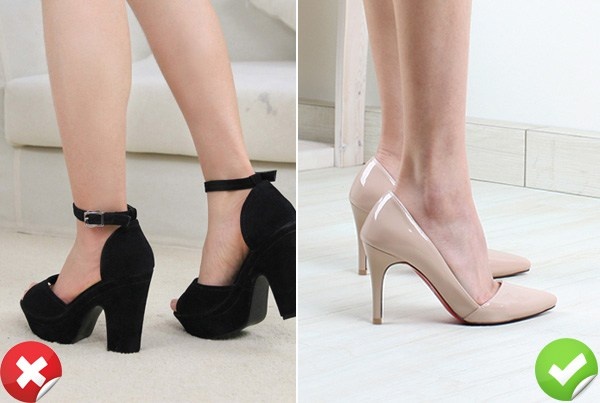 Giày cao gót: Giày cao gót với thiết kế đơn giản và phần gót thanh mảnh sẽ cho bạn thon dáng và đôi chân sẽ gọn gàng hơn rất nhiều. Tránh xa những đôi giày đế vuông hay đế xuồng to bởi chúng có thể khiến chân bạn trông thô hơn, đặc biệt khi kết hợp với những bộ quần áo xù xì của mùa đông. |