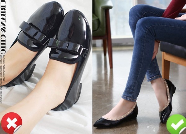 Giày bệt: Đừng nên chọn những đôi mũi tròn bởi nó có thể khiến chân bạn có cảm giác to hơn. Thay vào đó, bạn hãy để mắt đến những thiết kế mũi nhọn nữ tính. Những đôi giày đế bệt mũi nhọn khiến dáng bạn trở nên thon thả, nhẹ nhàng và vô cùng thanh mảnh hơn. |
