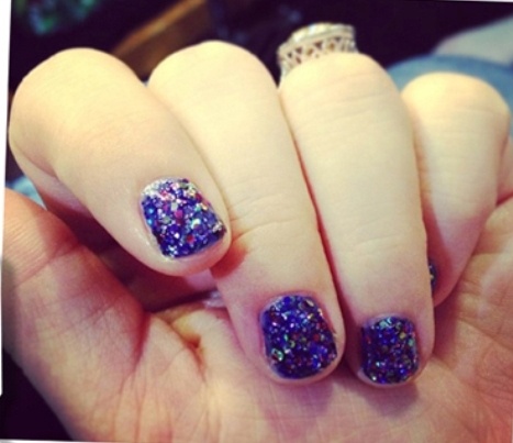 Nail xanh cobalt nhũ ánh sẽ mang lại sự nổi bật và trẻ trung cho bạn gái. Bạn có thể kết hợp mẫu nail này với váy áo ton-sur-ton đem lại nét đẹp quyến rũ, kiêu sa.