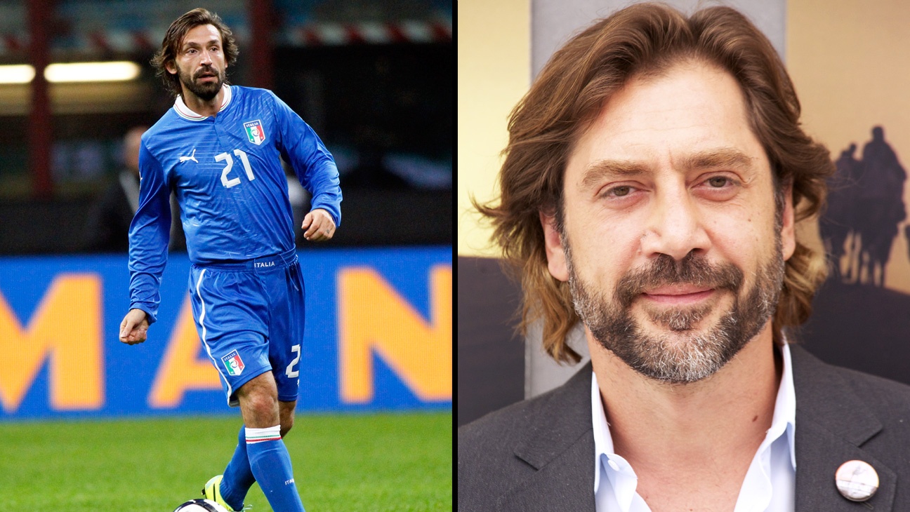 Andrea Pirlo - Javier Bardem: Đã ở tuổi 35 nhưng Andrea Pirlo vẫn là trụ cột ở hàng tiền vệ của Ý tại World Cup 2014 và việc đội tuyển này có vượt qua bảng tử thần hay không phụ thuộc rất nhiều vào phong độ của cầu thủ có biệt danh là “Ngài giáo sư’. Mái tóc và bộ râu chính là hai nét tương đồng tiêu biểu nhất giữa Pirlo và nam diễn viên Javier Bardem người Tây Ban Nha.