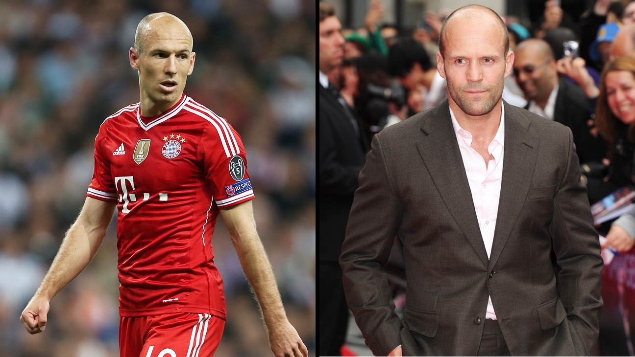 Arjen Robben - Jason Statham: Cái đầu trọc của danh thủ Arjen Robben thuộc tuyển Hà Lan rất dễ khiến người ta liên tưởng đến ngôi sao hành động Jason Statham. Tất nhiên, nếu phải thủ vai Robben, Jason Statham sẽ phải giảm cân tương đối.