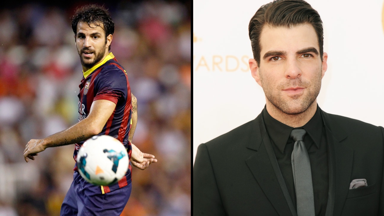 Cesc Fàbregas - Zachary Quinto: Tiền vệ người Tây Ban Nha vừa hoàn tất cuộc chuyển nhượng sang CLB Chelsea, nước Anh ngay trước giờ World Cup chính thức khai mạc. Tài tử Zachary Quinto của Star Trek hẳn sẽ là một lựa chọn hợp lý nếu như các đạo diễn cần người vào vai Fàbregas.