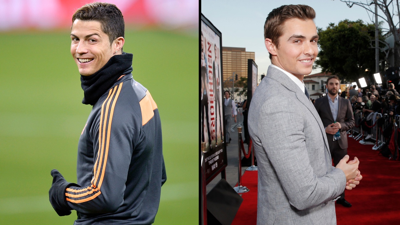 Cristiano Ronaldo - Dave Franco: CR7 là mũi nhọn tấn công của tuyển Bồ Đào Nha tại World Cup 2014 và luôn là chủ đề nóng hổi trên các diễn đàn bóng đá trong suốt nhiều năm qua. Còn nam diễn viên Dave Franco là em trai của tài tử James Franco và được nhiều người biết tới hơn sau bộ phim hành động ảo thuật Now You See Me hồi mùa hè 2013. CR7 và Dave Franco trông đặc biệt giống nhau khi mỉm cười.