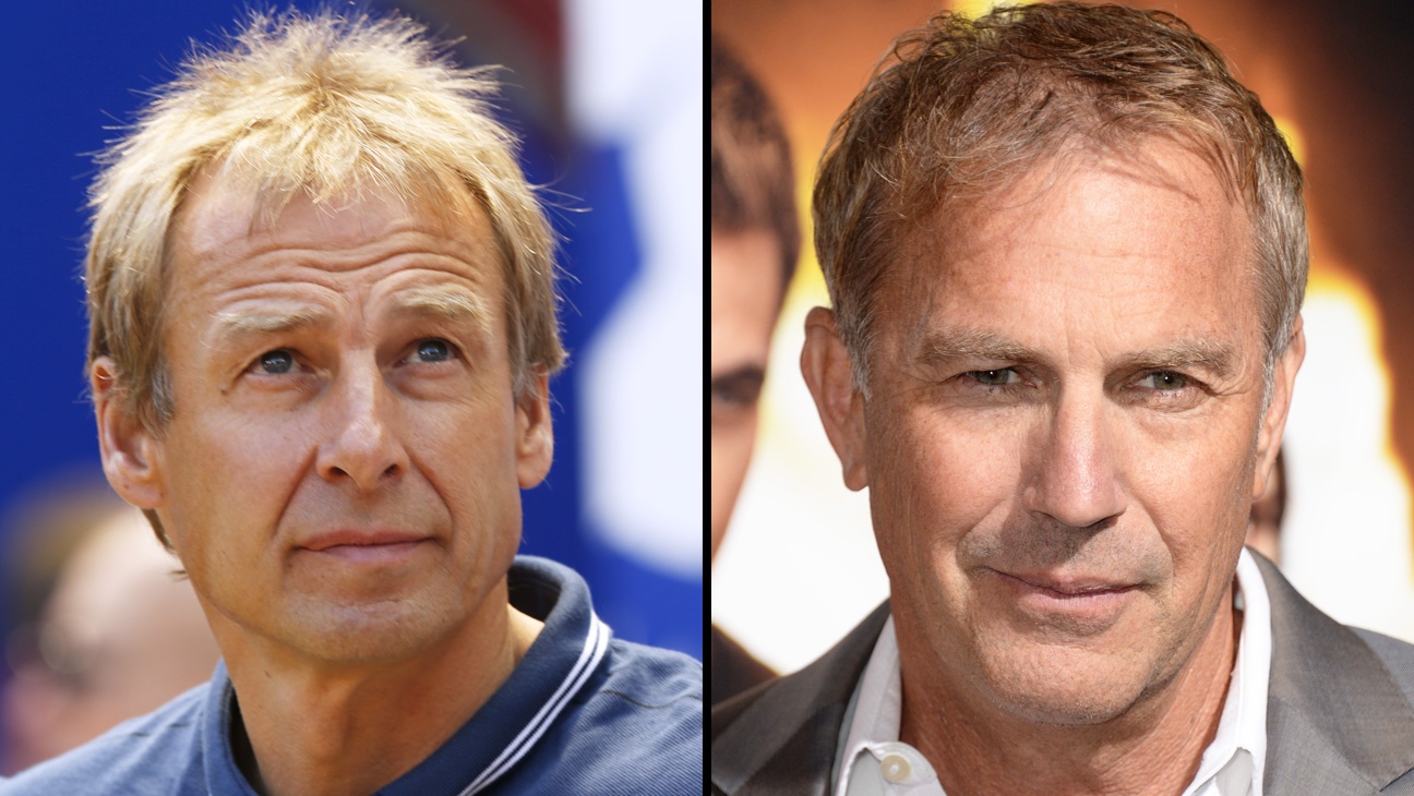 Jürgen Klinsmann - Kevin Costner: Chuyển lên hàng ghế huấn luyện, một trong những trận đấu đáng chú ý tại vòng bảng World Cup năm nay là cuộc đấu giữa tuyển Đức và tuyển Mỹ. Tại World Cup 2006, “Klinsi” từng đưa Đức tới vị trí thứ ba ngay trên sân nhà. Nhưng tại World Cup 2014, ông lại là người dẫn dắt đội tuyển Mỹ, còn người trợ lý cũ của Klinsmann là Joachim Löw hiện lại đang nắm quyền tuyển Đức. Tài tử Kevin Costner hẳn là một gợi ý tốt cho “Klinsi” phiên bản điện ảnh.