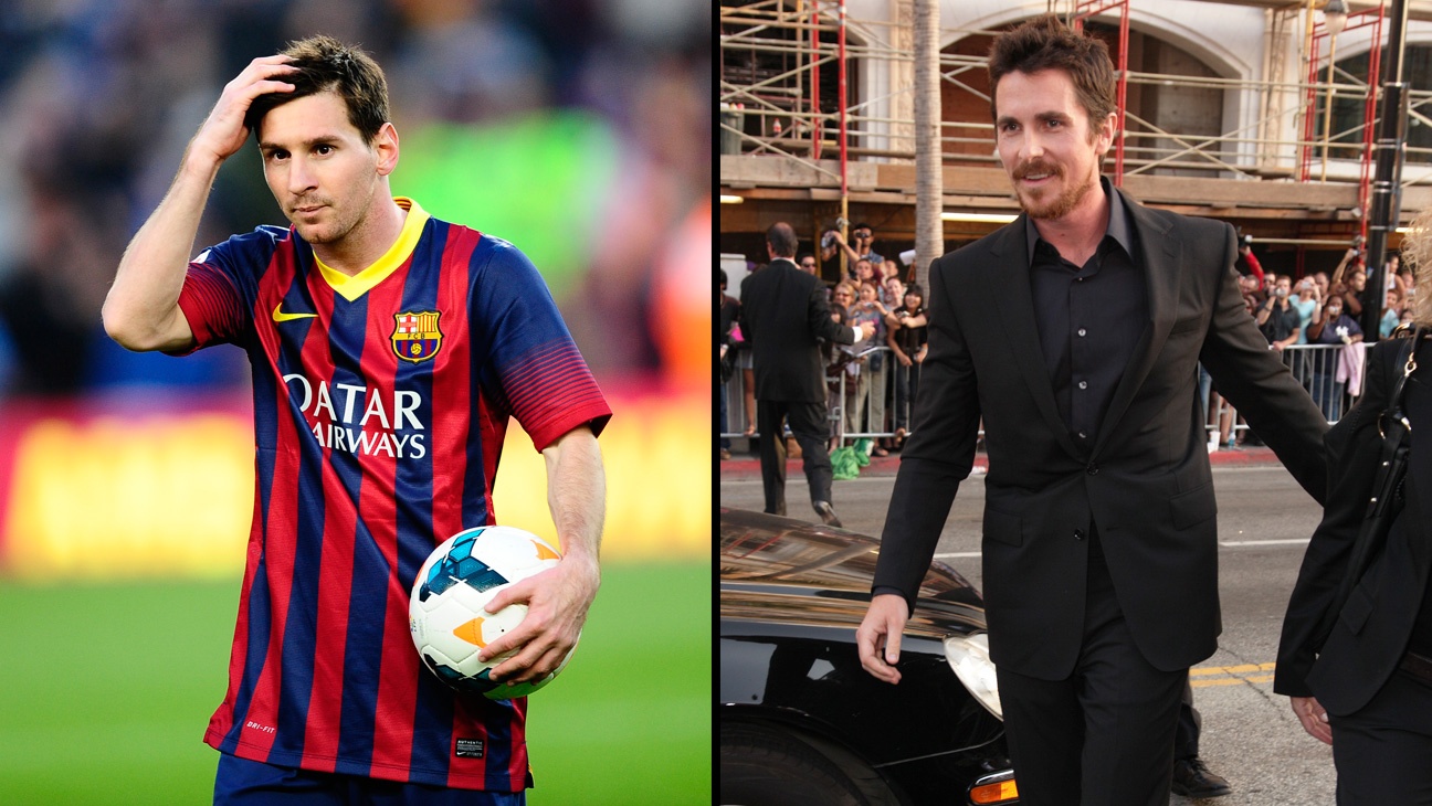 Lionel Messi - Christian Bale: Đã nhắc tới CR7 thì không thể nào bỏ qua Lionel Messi, ngôi sao sáng giá nhất của đội tuyển Argentina. Chức vô địch World Cup 2014 hẳn sẽ là lời khẳng định rõ ràng nhất giúp Messi đập tan mọi sự so sánh với CR7 đến từ phía người hâm mộ. Ở một vài góc độ, tài tử Christian Bale trông khá giống với tiền đạo lừng danh. Bài toán được đặt ra ở đây là nam diễn viên sẽ phải tìm một cách nào đó để giảm khoảng 12 phân nhằm có chiều cao tương đương như Messi.