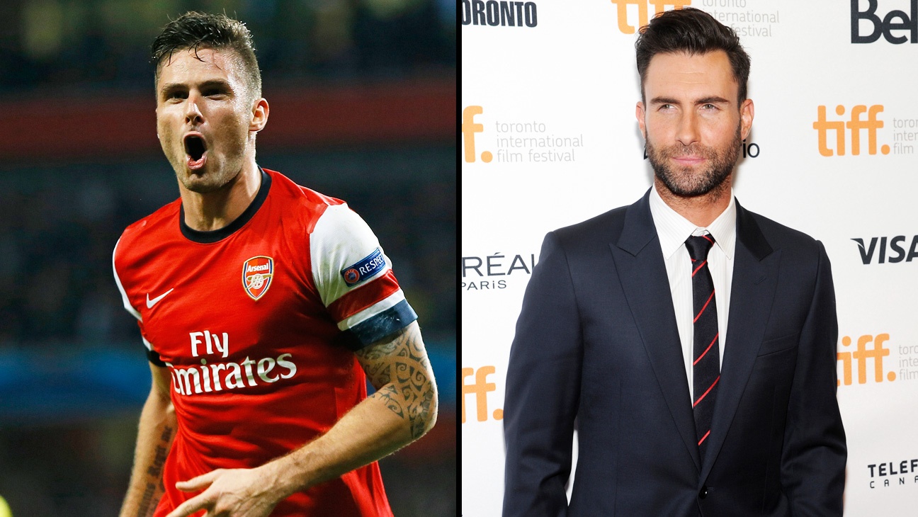 Olivier Giroud - Adam Levine: Tiền đạo của đội tuyển Pháp và CLB Arsenal là người chơi cao nhất trên hàng công của những chú gà trống Gô-loa tại World Cup 2014. Nếu như thủ lĩnh của nhóm Maroon 5 cạo đi bộ râu và sửa lại mái tóc một chút thì Adam Levine và Oliver Giroud sẽ trông chẳng khác gì hai anh em cả.