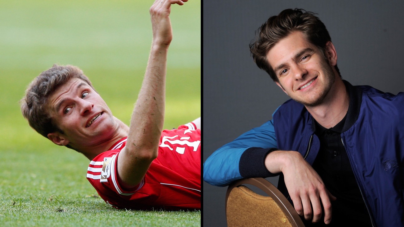 Thomas Müller - Andrew Garfield: Thomas Müller là ngôi sao của đội tuyển Đức tại kỳ World Cup 2010 với 5 bàn thắng ghi được. Anh tiếp tục là niềm hi vọng của nước Đức tại World Cup 2014 sau khi người đồng đội Marco Reus bị chấn thương và không thể tới Brazil thi đấu. Andrew Garfield thì vừa xuất hiện trong bom tấn The Amazing Spider-Man 2 hồi tháng 5/2014. Ở ngoài đời, Garfield rất thích chơi bóng rổ. Nam diễn viên trẻ hoàn toàn có thể cân nhắc tập luyện thêm môn bóng đá để thủ vai Müller khi có cơ hội.