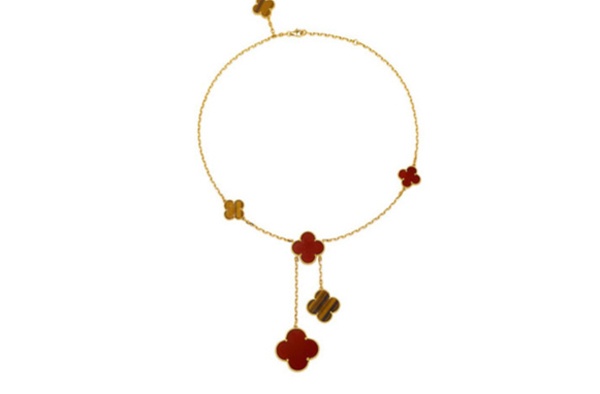 | Hoa tai mã não Van Cleef & Arpels và vòng cổ Van Cleef & Arpels Red Agate. |